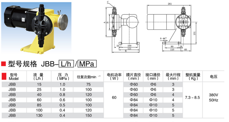 產(chǎn)品名稱:JBB型機械隔膜式計量泵