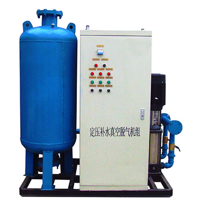 定壓補(bǔ)水脫氣機(jī)組是我公司采用先進(jìn)技術(shù)研發(fā)的實(shí)現(xiàn)集中供熱及空調(diào)系統(tǒng)定壓、膨脹、補(bǔ)水、真空脫氣四位一體的新型設(shè)備。該設(shè)備在系統(tǒng)中起到穩(wěn)壓、自動(dòng)補(bǔ)水、膨脹自動(dòng)泄水,脫除系統(tǒng)內(nèi)游離氣體及溶解氣體等作用。使系統(tǒng)始終處于環(huán)保、節(jié)能的運(yùn)動(dòng)狀態(tài)。 該裝置利用氣壓罐的可調(diào)節(jié)能力,可自動(dòng)調(diào)節(jié)用戶水量的變化,當(dāng)用水量減少或不用水時(shí),可較長(zhǎng)時(shí)間不啟動(dòng)水泵,達(dá)到節(jié)能目的。 與水塔、高位水箱相比可節(jié)省投資約40%—60%。該設(shè)備結(jié)構(gòu)緊湊,與其他傳統(tǒng)的供水裝置相比減少了占地面積, 節(jié)省了土地資源。本設(shè)備全自動(dòng)運(yùn)行,無(wú)需專人管理,工作可靠。